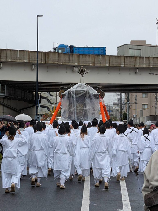 本当はもう一か所の饒津神社にも行き、七福神めぐりを完成させるところだったのですが、なんと当日は、古くからの御祭礼を引き継ぐ為の「広島神輿行列」の斎行の日でした!最後の神社には行けませんでしたが、再現された江戸時代の行列を見ることができ、参加者は皆、福をいただいた気分になっていました。