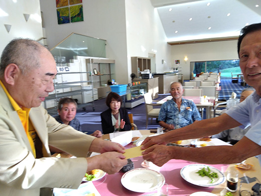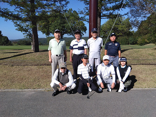 高山行雄氏(S45米英)は所用で欠席したが、小園豊(S54経営)加奈子御夫妻の参加で、堂々の8名2組フルパーティとなった。10月10日は晴れの特異日のため、1964東京五輪の開会式となっただけあって、言い訳の出来ない青空。山本信司大先輩(S37米英)の正確なショットで秋の大会が開幕した。ところが今日の大先輩は様子がおかしい。OBなどミスが多く第6位の結果に終わった。上手の手から水が漏れたようだ。小園加奈子さんは苦労してスコアをまとめ、昼からハーフ50、グロス104と堂々全体3位の成績。ハンディの関係で5位となったが、大健闘と云える。いつもBBを争う真島秀幸幹事(S48経営)と筆者高橋はグロス109,108と1打差のなんと3位争いの大接戦。ハンディの差で真島氏が逆転3位となった。熾烈を極めたのは葉室氏と久芳健二氏(S44中国)の首位争い。15ホールまで同スコアだったが、残り3ホールで葉室氏が上回り、11連覇を達成した。次回記事は久芳氏の優勝を伝えているかもしれない。BBに終わった安徳信義氏(S44商)はパー、ボギーが8ホールあったのに,他でのミスが惜しまれる。小園氏はBBメーカーに終わったが、次回雪辱を果たして頂きたい。 来年開催は4月10日〈金)三木よかわC.C.