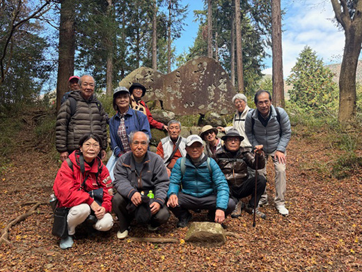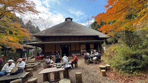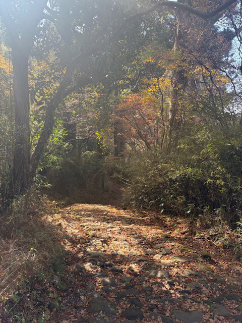 鳥居忱作詞、瀧廉太郎作曲の箱根八里で知られた、杉並木を天に仰ぎ、石畳、羊腸の小径に足を取られながら箱根馬子唄の石碑を過ぎ、箱根最高地点(海抜800m)を過ぎると後は下りの石畳。ハイキングの目的地である甘酒茶屋に着いて茶屋を取り巻く紅葉を愛で、名物の甘酒と団子、持参の弁当に舌鼓を打ち、古の箱根八里を往来した先人達に思いを寄せながらしばし歓談した。