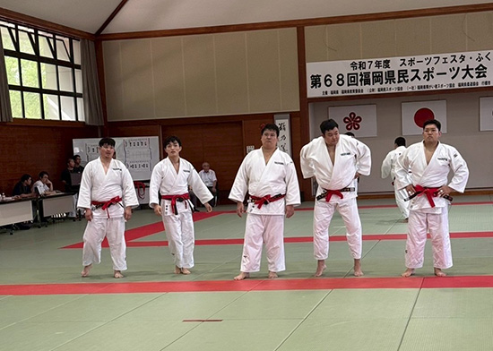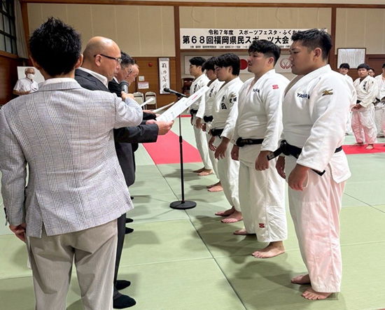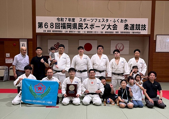 令和7年9月21日、行橋市の行橋武道館で開催された題記大会に、(H30・中国)卒の中野隆成氏が 北九州市チーム(一般の部)の大将として出場されました。 北九州市チームは、今年も中野氏の勤務されている安川電機柔道部の選手で構成されました。 1回戦は、粕屋郡チームに5対0で圧勝。準決勝戦は大牟田市チームに4対0で快勝。 決勝戦は福岡市チームに4対0で快勝しました。 因みに中野さんの個人としての成績は、3戦全勝で負けなしの成績で、すべて1本勝でした。 昨年から実業団大会を含めすべて負けなしの素晴らしい結果を残されています。 これからも本学柔道部のOBとして各種大会に出場されてご活躍されることを期待しております。