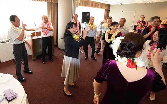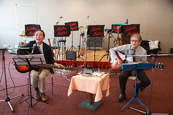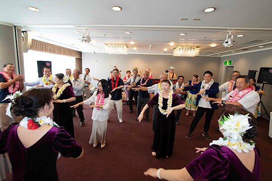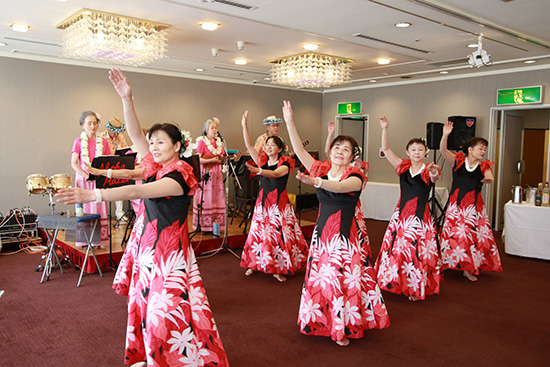 ブランクを感じさせない演奏と踊りに感激するのみならず、来賓も出席者も全員フラダンスの輪に加わり、非常に盛り上がりました。