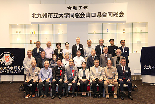 恒例の山口県下6支部(下関、宇部、山口、防府、萩・長門・美祢、東部)による2年に一度の合同総会を、新山口駅前の山口グランドホテルにて開催いたしました。今年は25名の参加がありました。 本部からは金井理事、池園理事にご臨席いただき、誠にありがとうございました。宇部支部の岡田支部長(S59年卒・米英学科)の開会の挨拶に始まり、金井理事のご来賓挨拶、続いて各支部からの近況報告が行われました。 記念講演では、北九州市立大学学長・柳井雅人様に「(仮称)情報イノベーション学部の概要と特色」と題してご講演をいただきました。「旦過キャンパス」の計画をはじめ、母校の新たな挑戦と発展についてのお話に、同窓生一同、誇らしい気持ちで耳を傾けました。 その後、池園理事のご発声による乾杯で懇親会に入り、世代を超えた交流の中で親睦を深めました。結びは、萩・長門・美祢支部の月成支部長(S56年卒・米英学科)による万歳三唱と防府支部の能野支部長(S62年卒・経営学科)による閉会の挨拶で盛会のうちに幕を閉じました。 つかの間のひとときではありましたが、再会の喜びと母校への思いを分かち合う有意義な総会となりました。次回の開催でも、また多くの同窓生とお会いできることを楽しみにしております。